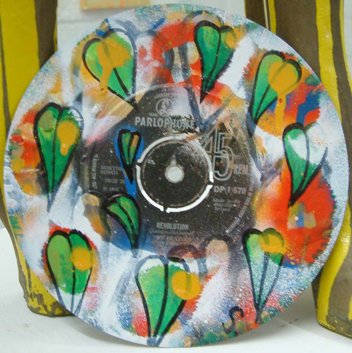 Twp old albums and a Beatles record, way past being playable, 10p in the charity shop and half way to being ready for the show in two weeks and a Saturday spent inside and outside the gallery… Three of several pieces that are still work in progress.