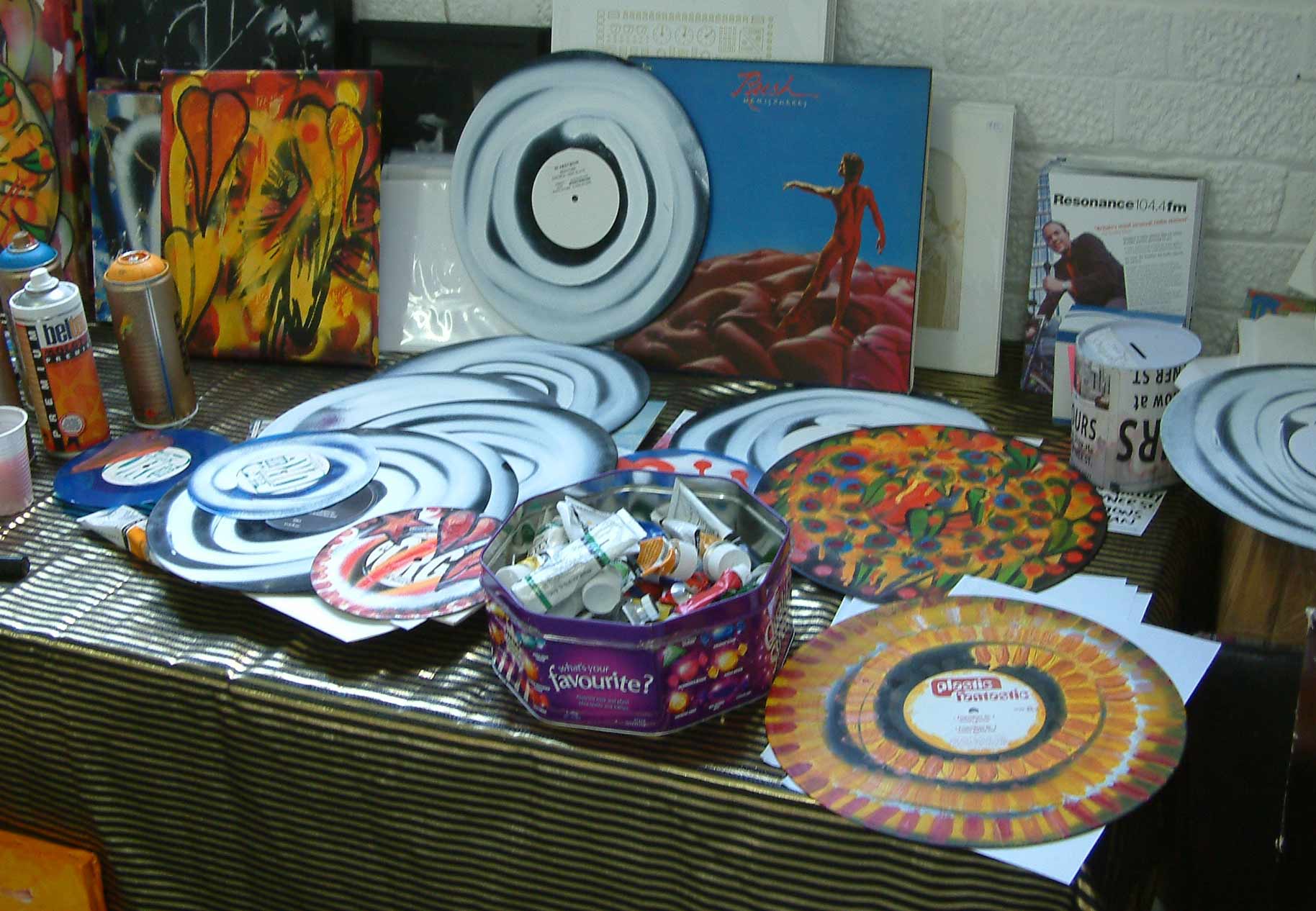 Do rather like the idea of lots of reasonably priced pieces of hand painted pieces of vinyl… all part of the continuing what price art exploration… fifty pieces of vinyl, hand painted and for sale at no more that £20 a piece, probably less in most cases…