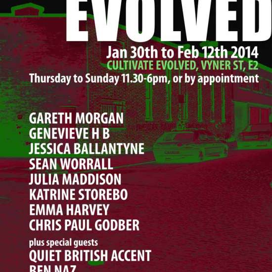 xxx First Thursday at the art chute that is Cultivate Evolved then, 6th Feb down the middle of the thing that is Vyner Street, there’s more about it here via the gallery blog, I expect I shall have some leaves and things growing nicely by Thursday evening… Eight plus two, eight in house artists, two evolving guest spaces…..