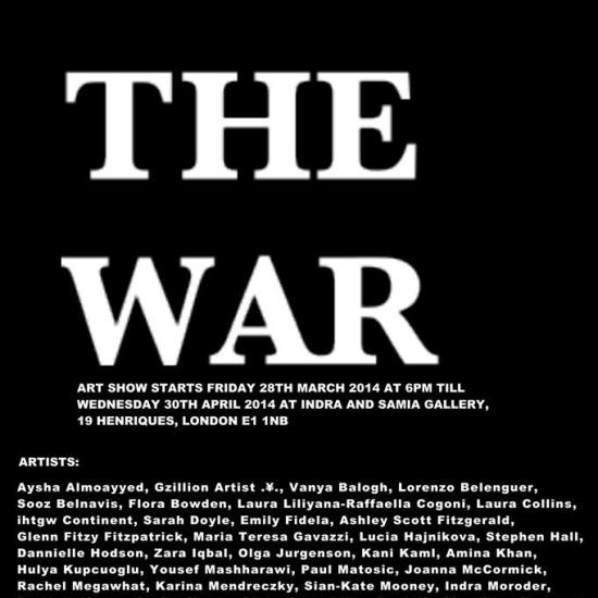 STOP THE WAR – An art show at INDRA AND SAMIA GALLERY, London E1. – A group show called Stop The War, opening on Friday 28th March and running until late April 2014..