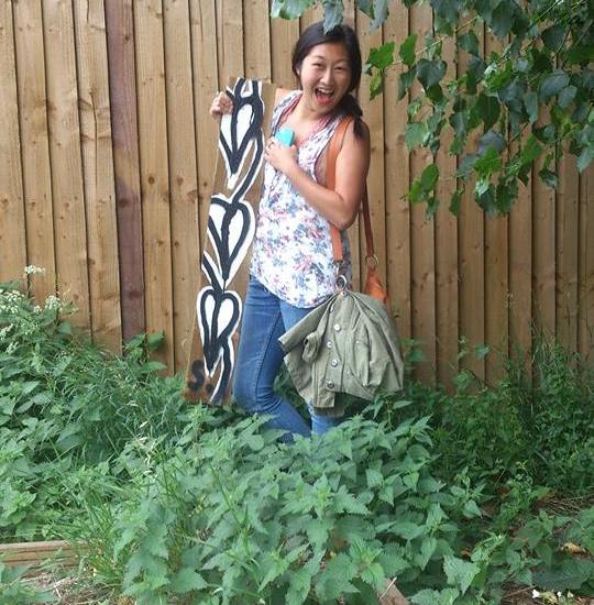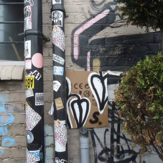 For the last Month or so I have been pulling together the fifth in a series of One Hundred Pieced Pieces, this time painting on one hundred found pieces, one hundred unwanted things – pieces of wood picked up off the street, unwanted painted canvases retrieved from the bins of art studios, old doors dumped on the pavement, an smashed plinth thrown on to Vyner Street, worn out skateboard decks… Things all painted, leaves and growth added and painted ready to go back out on to the streets they came from. All numbered and labeled 9and yes you can see hearts if you want, hearts, leaves, leafhearts, the choice is yours, no interpretation is right or wrong). Some of them to Hackney Wick for the WickED weekend and some back on to the streets of East London. Originally it was to be all one hundred at Hackney Wicked, as the weekend evolved so did the plan, for the best laid plans always evolve, fifty to the Wick to birth the drop and fifth more around the streets, canals, walls and pub signs of East London during August, keep an eye out around the canal, Redchurch Street, Vyner Street, Hackney Road and such…. Hackney Wicked was a pleasure, a shared pleasure…. people twittering about their finds and Facebooking their photos, sharing the pieces, i guess some of them found their way in to the bins of the clean up teams at the end but that’s where they were to start with so nothing lost, a few unwanted things given new life. I enjoyed my part in the Hackney WickED weekend, on we go throughout August with the recycling and releasing of the Fifth One Hundred Pieced Piece… . (SW)