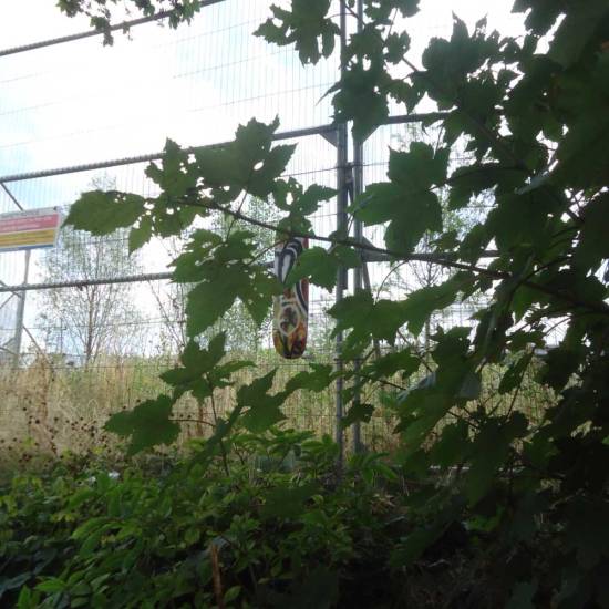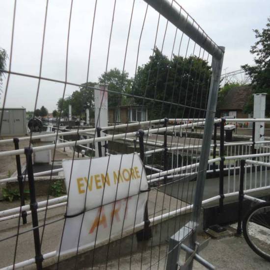 The weather was excellent, save for a dramatic downpour that soaked those of us who were up preparing things, dropping art and such early on on the Saturday morning. Indeed my first Saturday morning visit was pretty much shared with no one but the foxes and swans, the real calm before the artistic storm. What was I doing up at 6am with the foxes? On my bike with a heavy back pack, dropping off the first of the Fifth One Hundred Pieced pieces around the wick.