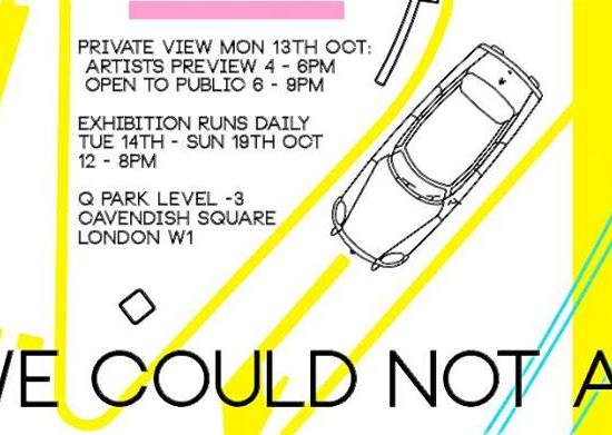 The opening night of the We Could not Agree Car Park show is 6pm to 9pm on Monday 13th october and then the show runs daily from Tuesday 14th Oct until Sunday 19th October at QPark Cr park, Level -3, Cavandish Square, London W1.
