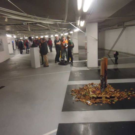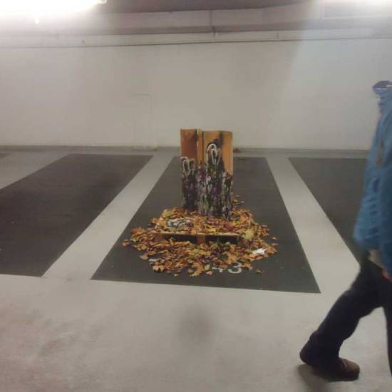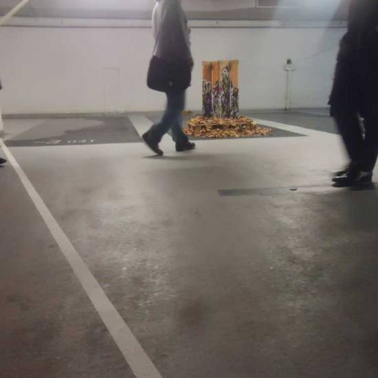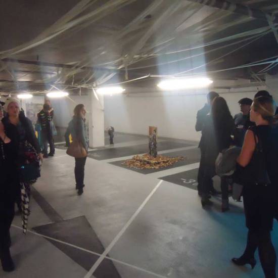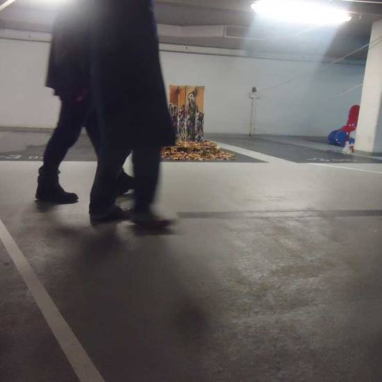 An animated video piece from last night’s opening of the We Could not Agree show, an art show in a circular underground car park in central London featuring over one hundred artists. The show runs daily from Tuesday 14th Oct until Sunday 19th October, midday until 8pm at QPark Car park, Level -3, Cavendish Square, London W1.