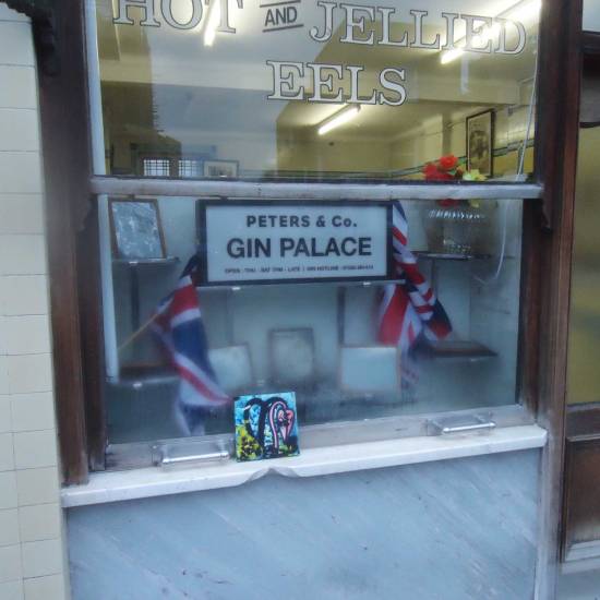 2015 #365ArtDrops Part 5, January 5th, East London and a piece painted on a mass produced canvas print (20cm x 20cm) found thrown away last year. Painted on, recycled and left out for someone to take should they wish