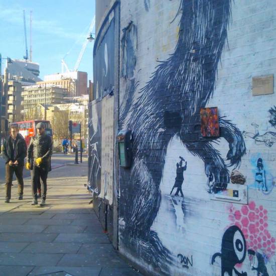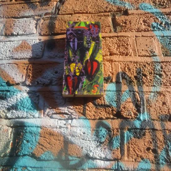 #365ArtDrops Part 19 to 28, Saturday 24th January 2015. 365 paintings of things found on the street, things painted on and then put back out there again. Today’s ten were dropped around East London, well mostly hung up around East London but you know what I mean. Did I say I was going to do twelve? Ten, twelve…. Ten went out today, as long as they all go out before December 31st.. Today’s drops were around Shoreditch, Hoxton and Brick Lane, the pieces all strung and ready to be hung, just a case of finding a hook or an old nail, that and an interesting wall… And no, it won’t always be East London, as the year unravels they’ll hopefully be going out further afield. Some days just one, some days in batches like the ten that went out today in the January East London sun. Now will anyone take one? Will there be any response via the hash tag?