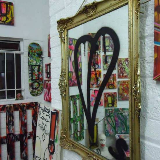 “Your work is aesthetic consolation in urban settings. Neat” said someone on a social media site yesterday (a site called Ello if you must know), kind of like that. it was a comment underneath a photo of a piece that emerged from the studio here yesterday, a piece that doesn’t have a name yet and may not be finished yet. I guess it was an old mirror frame that had fallen off someone’s wall, there it was on top of a rubbish skip ready to go off to landfill until….