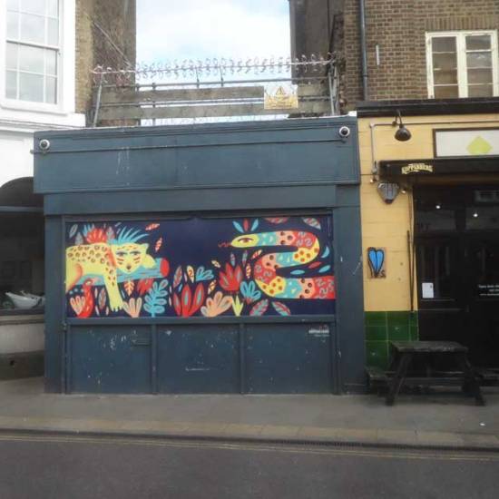 The #365ArtDrops piece goes on, yesterday parts of the piece were left down by the Thames, south of the river, around Borough High Street as well as the market. Pieces painted on found pieces of wood, on recycled cardboard, on an old sign. 98 parts of the piece have gone out now.