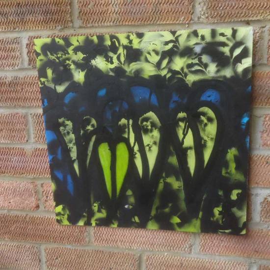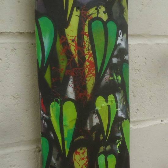 Meanwhile, more growth painted on another broken skateboard deck found left on top of a bin on the street, here in Hackney, East London, recycled, painted on and ready to be hung on a gallery wall or… Everything is a canvas…