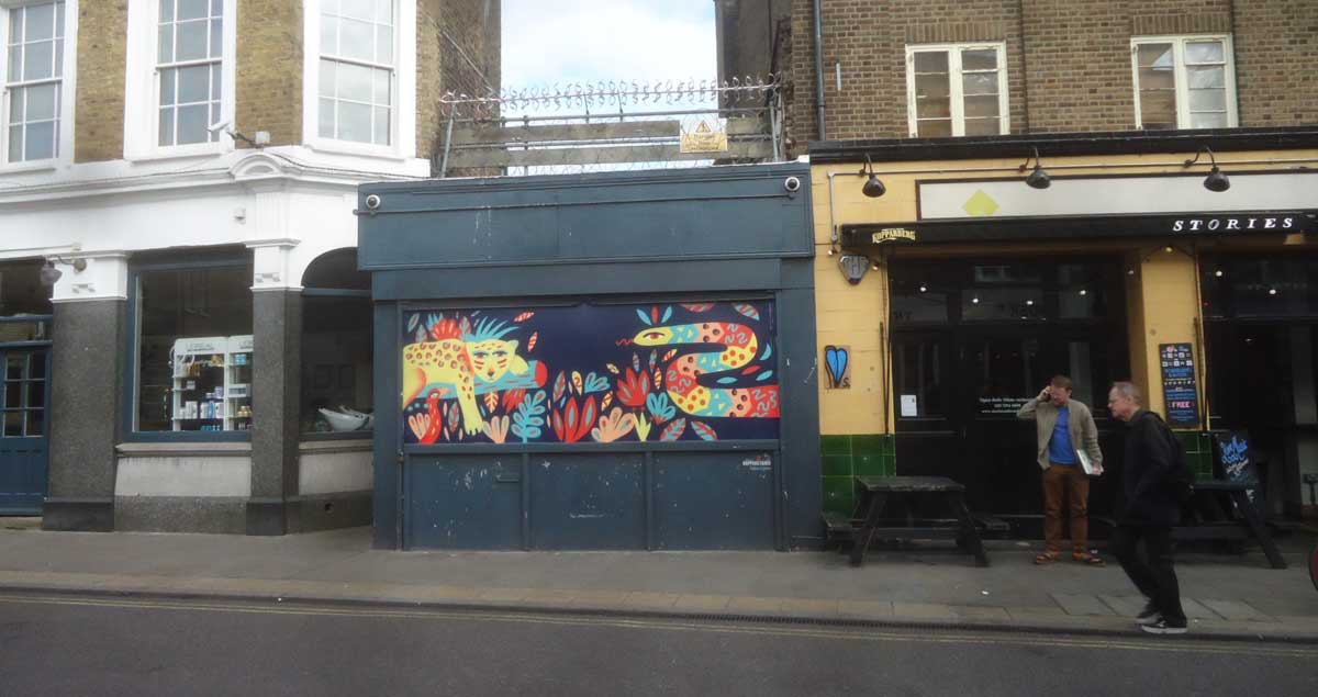 Meanwhile, this piece, part 90, was deliberately left hanging by the front of the boarded up one time much loved community cafe in the middle of Broadway, Hackney, East London. The boards are now used for “officially sanctioned” public art now, wonder if any of the artists, or indeed the gallery who have their logo painted on those boards, know what went on there. How long has in been boarded up now? Really wanted an excuse to post this film (by Emily James) up on line. “in late November of 2005, a small café in the East End of London was due to be demolished to make way for a block of flats. On the eve of the demolition, a handful of local residents occupied the café to stop the demolition. I started filming on the first day of the protest, following them through the long cold winter of their occupation”.