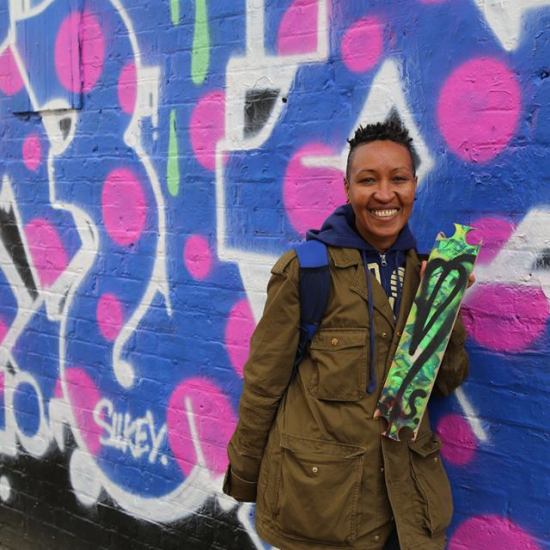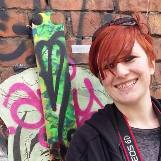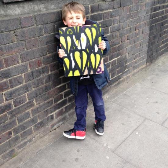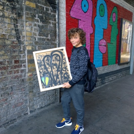I love this photo, a smile that bring a smile, this piece, part 109 of the #365ArtDrops piece, was painted on a piece of offcut wood picked up out of a skip. The piece was hung on the wall by Sclater Street, Shoreditch, East London, last Sunday and this photo,of a girl called Gill, the finder of the piece, appeared on social media a day later.