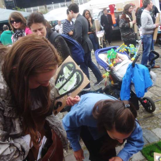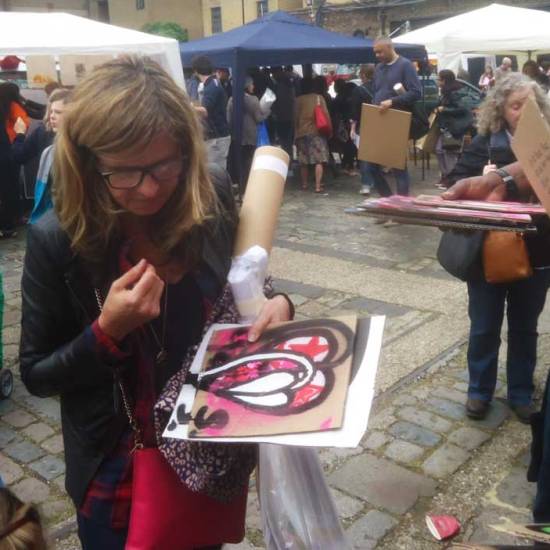 Some thoughts posted on social media this morning – “Good time had at the 2015 Art Car Boot Fair yesterday. Lots of meeting and chatting with people (sorry if i got a little busy as times when people were trying to talk to us on the stall). I do rather like the engagement that comes with the One Hundred Pieced Pieces and the idea of a piece of work that exists in one hundred pieces that can be sold for just one pound each. I see it as one piece of work that is shared between many people (so really I sold a piece of work for £100). I like that people come up to me and say they have a piece on their kitchen wall or in their office, I like that hardly any money changes hands and it really isn’t worth anything other than the pleasure. Really enjoy being a part of the Art Car Boot fair, really enjoyed it again yesterday. Of course it is good to sell a painting or two and and pay the never-ending bills, but there something about the pleasure in painting these £1 pieces and the enjoyment comes with the whole process. Big thanks everyone who came along, good to talk and share… Several people told me I should charge more for these pieces but that would defeat the object of the exercise. I might be as broke as hell but you can’t buy art moments like some of yesterday’s. Big thanks everyone, big thanks to the hard working organisers of the Art Car Boot Fair (it would drive me mad putting all that together, Play last week was enough for a bit). And a massive thanks for the chocolate and Guinness cake, the photos and the smiles”