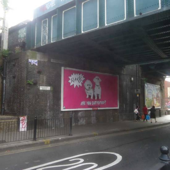 The notion of hanging a painting on a wall for someone to just take should they wish seems to be upsetting one or two people (one or two so called street artists actually). Today’s rather irate e.mail talks of food being taken out of the mouths of those trying to make a living out of their art and that no one should be giving away art (what is is it with so called “Street” artists). Some kind of brokenass froth and babble about people like him trying to build careers and people like me damaging that career, Seems he’s a serious artist and apparently serious artists should be in galleries and not hanging work for free on street walls. I had almost the same conversation last week, last week the artist at least had the balls to confront me face to face while he shook his cans of paint in my direction and lectured me about paying his rent and the price of fish. Now anyone who knows me knows well I’m not some beard-growing East London trust-fund rich kid, far from it, and really if you feel threatened enough to need to make threats then really you need to have a look at what and why you do what you do (the threat was something along the line of finding, removing and destroying every piece I hang). When did it all become so infested with rules, when did so called street art become such a business? Who sets these rules? What is street art anyway? I never claimed to be a street artist (although I probably have more of a street art history than you). Who gets to say who can hang what where? I love art galleries (well some of them) but why should art always be in a gallery? Art is this city is becoming more and more conservative and rule-infested by the day, I’ll paint what I want when I want, I’ll hang it where i want, I’ll charge what I want to, I’ll give it away if I want to, your “rules” play no part in the making and presenting of art (besides the rule that artists should be treated correctly by those involved in the business of art) and the careful “dropping” of art and the engaging with people who play in orchestras or run around in Arsenal shirts or who are over here visiting from Oakland or driving their car past the ruins of the George Robey over in Finsbury Park – “So happy nobody has taken this piece yet, I get to look at it every night on the way to work” said John (via social media) about the piece hung outside the Robey last week.