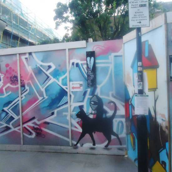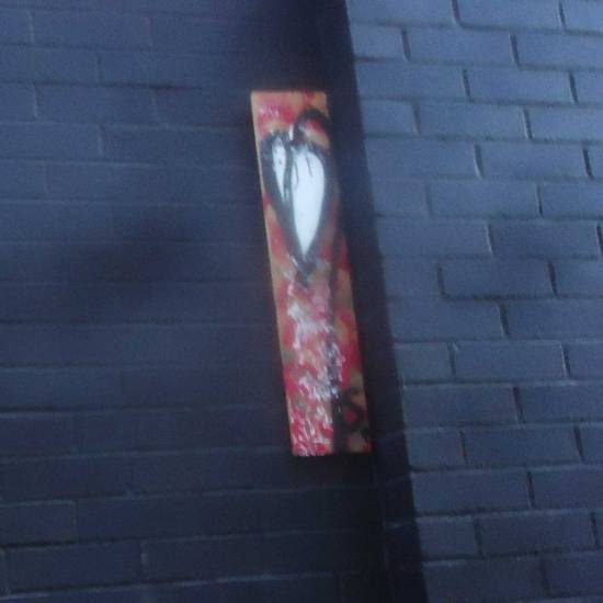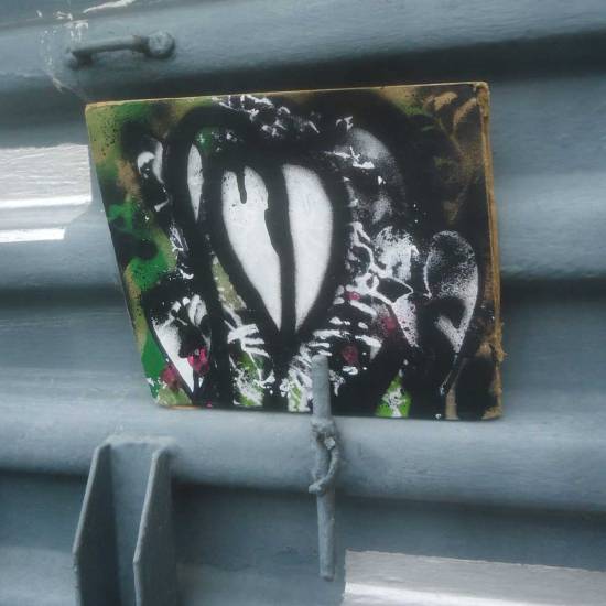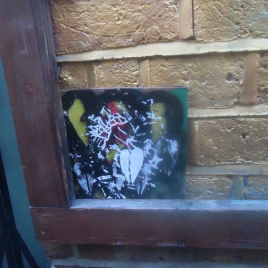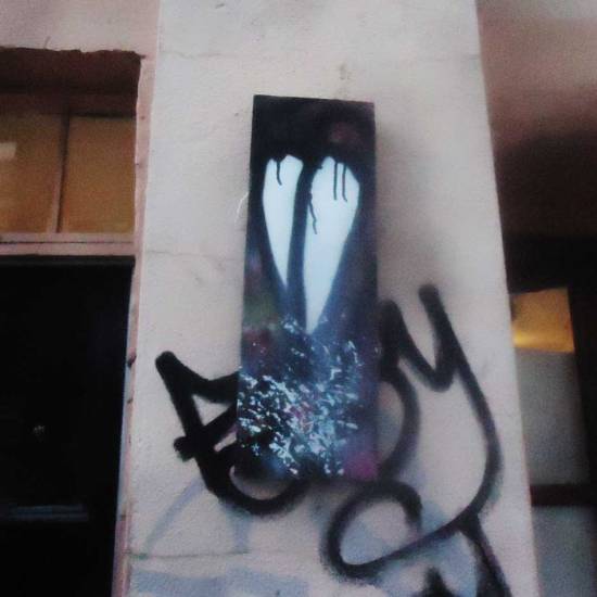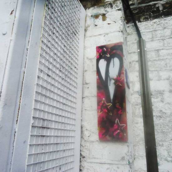 The year long 365 piece of work went on through August, pieces of found bit of wood, on recycled cardboard, part 196 painted on a generic Ikea print found in a skip, painted on then and left on some scaffolding on Leonard Street, part 199 painted on a small piece of woof and left next to a Sweet Toof on an East London street. The #365ArtDrops piece of work goes on until December 31st, 365 pieces painted on things found and then hung out on the street for people to take. The whole thing is documented on a Tumblr blog.