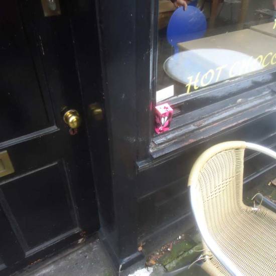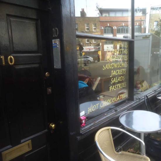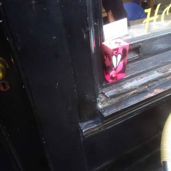 Went in to wish Farid well today, he’s being forced out, don’t really know him, spoken a couple of times, really wanted to leave one of the art drops there today and make just a small point, art needs to be about community and Maison Dellys is part of the community. Finding a decently priced bite of food and an honest cup of coffee that doesn’t cost an arm and a leg is tough around here, finding a cup of coffee that doesn’t look down its nose at you really is tough these days, and I know what he means when he says he’ll miss the locals coming in, the friendships made, I feel the same about the regulars who came in to Cultivate, the bus drivers, the kids, the mechanics from the taxi garage, the cockney foot-model who always had a tale to tell about life around here in the 50’s and 60’s. So Maison Dellys, until next week, is “a small cafe in an old terrace beside the triangle of trees where Columbia Rd meets the Hackney Rd. In this quiet spot, you may rely upon a peaceful cup of tea and a snack at an affordable price – a commodity that grows increasingly scarce in this part of the East End. Farid Djebrouni opened his cafe eleven years ago and has worked hard to build up a significant clientele and reputation, but next week on Friday 30th October Maison Dellys will be closing forever in the face of a rent increase from £11,000 to £27,000 a year”. More via Spitalfields Life