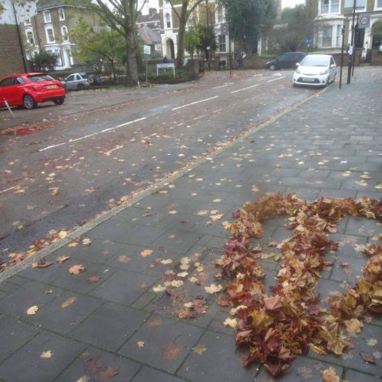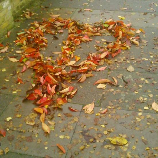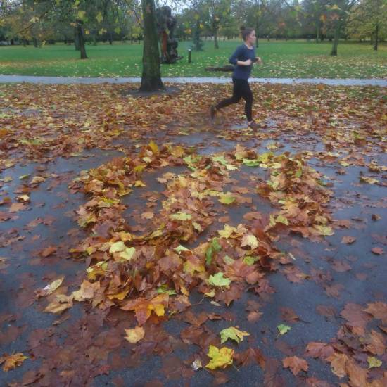More fallen leaves were shaped for a brief hour or two before the wind blew them off again…. “LEAVES – a series of works left to blow away”