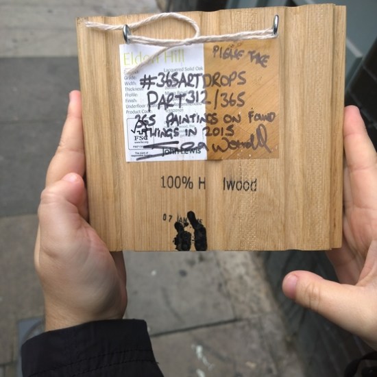 #365ArtDrops, Part 316, left hanging on a railing in an East London park yesterday and twittered about by the finder this morning, here’s the photo he posted on Twitter. The hashtag and people posting photos of themselves with their pieces is a big part of this year-long piece of work, big thanks to everyone who is posting and sharing (if you do please let us know) .
