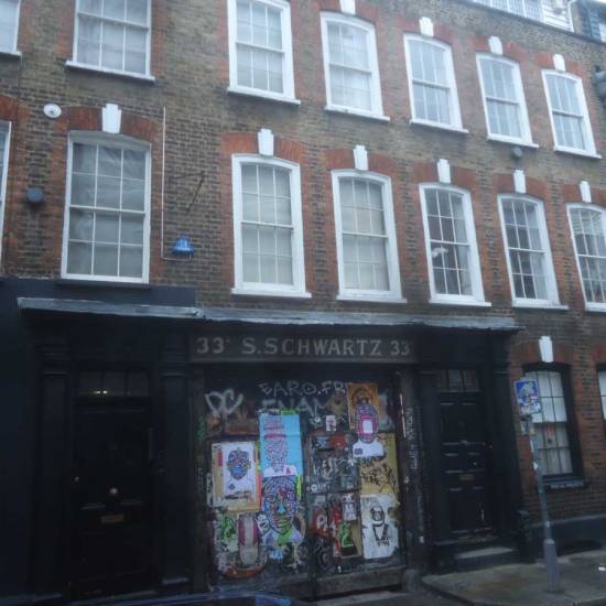 The Worrall House of 1720 is the quintessence of the Spitalfields nobody knows – built in a secret courtyard between Fournier St and Princelet St by Samuel Worrall, the builder responsible for many of the surrounding houses, it can only be approached through a narrow passage behind a heavily-encrusted door. When you step through this door, into the dark cobbled alley lined with ancient planks covered with paint and tar that has not been renewed in over a century, you feel – more than anywhere in Spitalfields – that you have stepped back in time. Here Samuel Worrall built a handsomely proportioned yet modest house for himself in his own builders’ yard. Just one room deep with a pedimented door and stone balls atop the gateposts, it resembles a perfect lifesize dolls’ house. Facing East and constructed of a single layer of bricks, it only receives sunlight in the morning and is not a warm building in Winter, yet there is an irresistible grace and mystery about this shadowy house of enchantment, presiding silently upon a quiet courtyard that is outside time (from the secret history of Spitalfields). What a fascinating place