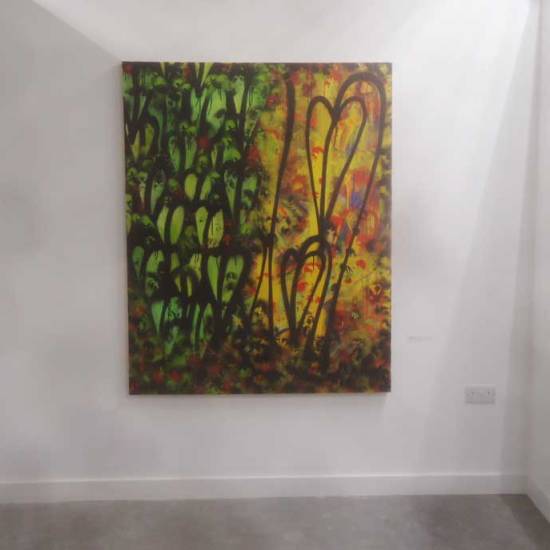 On in to the New Year, art does not take a break, and nor does it want to. The Reveal show has now happened, a four-day group show to kick off the year, I think we can feel satisfied with the first exhibition of 2016. Reveal: An Art Show in a Railway Arch – a show curated by Emma Harvey and myself with the intention of revealing some of our new work for the year as well as throwing down some creative intent for another 365 days.. We revealed some new work of our own, in my case a large canvas piece called “Silent Sorrow in Empty Boats” (something I needed to get back to after last year’s dropping) as well as a number in a series of works called “Sometimes They Have Thorns”,