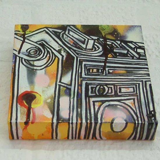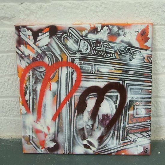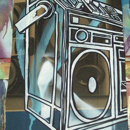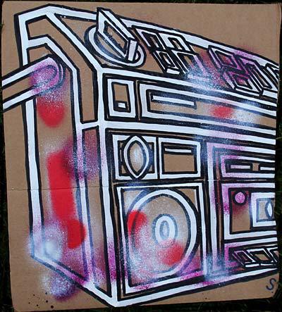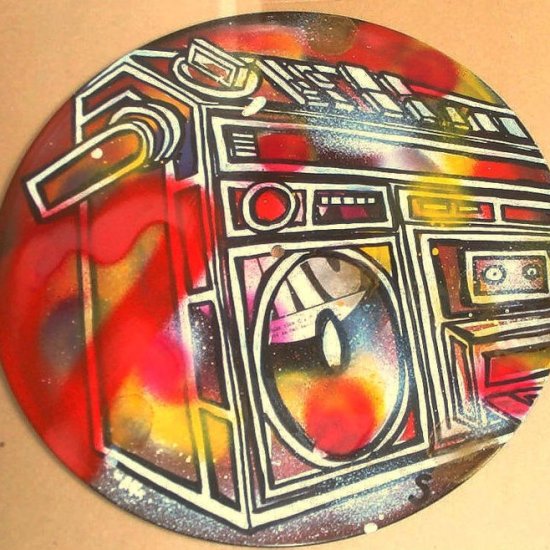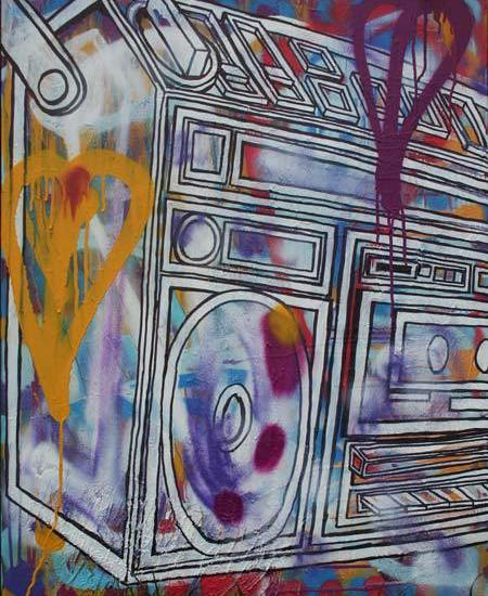 Further tales of Wilfred, the Resonance FM fundraising painting and the latest in an occasional ongoing series of Wilfred paintings. As previously explained, the latest piece has been commissioned by Wilfred’s owner, the latest piece is a painting currently being auctioned as part of the February 2016 fundraising event at excellent London arts radio station Resonance 104.4FM where said owner of Wilfred currently has a Sunday night music show. The tale of Wilfred is a long and complicated one, a long and complicated story that involves an all-girl Robot dancing duo/trio called Mekamorphis, the GLC Hip-Hop Jam of1984, an all day music and graff jam that happened in Jubilee Gardens, on the Southbank, here in London. As previously explained (via an earlier post) Wilfred provided sound for Mekamorphis (as well as lots of painting/busking sessions), and since the original posting people have been asking for more information, people have been coming out of the woodwork, painters, writers and performers who were involved back then, that and people asking about the now battle-scared beatbox (no he isn’t for sale, sorry).