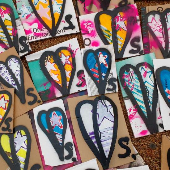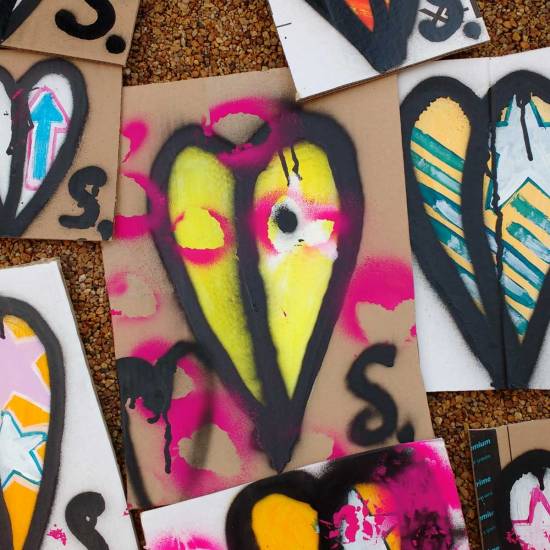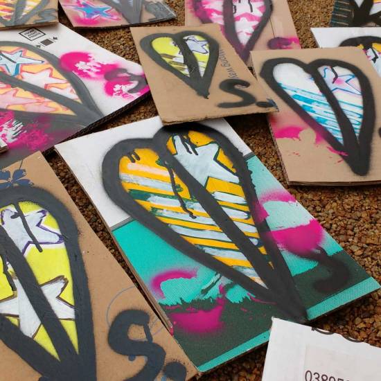 The #OneHundredPiecedPiece has now become an annual thing, one piece of art in one hundred parts. The parts are all painted at the same time and each part is sold for just £1 at the Brick Lane Art Car Boot Fair (Sunday 12th June, East London). The piece is about making art accessible and affordable to all, the piece is about engaging, the piece is about recycling unwanted cardboard, the piece is one piece of work in one hundred parts shared by up to one hundred people. It goes on sale this Sunday in the car park at Brick Lane….