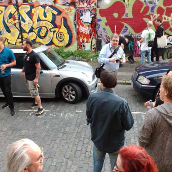 So an energetic art show happened on a street who’s days are numbered, under the shadow of a new building imposed… words? Energy? Reviews? What’s words worth? What’s Wordsworth? A whole load of artists came together, it was as much about the what happened outside on the street as what was on the walls inside… words? Gere’s the photos, enjoy the photos…. the who needs words? What price coffee? See you at the next one? Is there a next one? (SW)