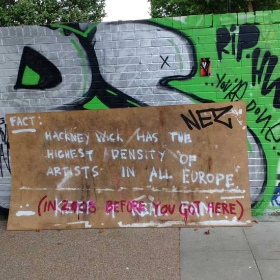 Rather like leaving pieces of art for people to take, especially when it has been painted on something left on the street or in a skip, something that was heading for landfill. And especially when the pieces are left to be found somewhere as vitally important to a community as Hackney Wick is – a place loved and tended to by artists when virtually no one else seemed to care that much. Treasure these places while you can, treasure your art spaces and the energy artists bring to dying places, treasure the creativity and don’t just push it and us all out #savehackneywick