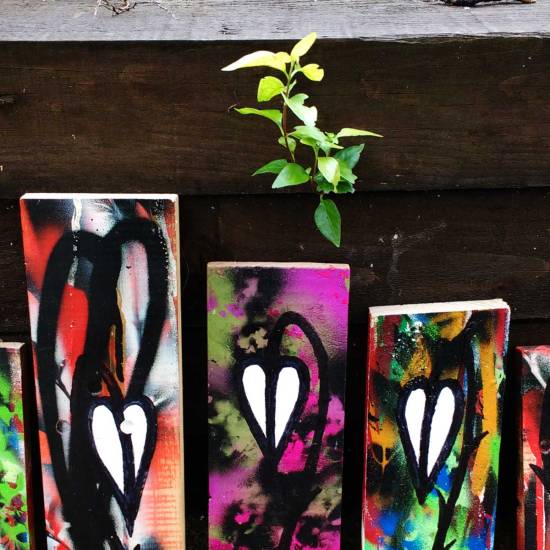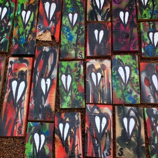 The 43 pieces we’re all painted, a thorny piece of fresh growth on each one, a message on a sticker on the back, a hash tag and request for finders to post photos, a selfie with their find or a just a photo of the piece on their wall, post up those photos and use the hashtag, no so on the end, it is one piece called #43ArtDrop, post the images on social media for us to find.