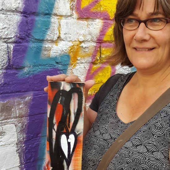 And so the pieces left hanging on walls around Hackney Wick during last weekend’s Hackney Wicked festival, 43 pieces left there for people to find, the 43 pieces of the #43ArtDrop piece, each one with the message on the back encouraging the finders to post a selfie with their piece on the various social media platforms using the hashtag… The selfies are all part of this piece of work