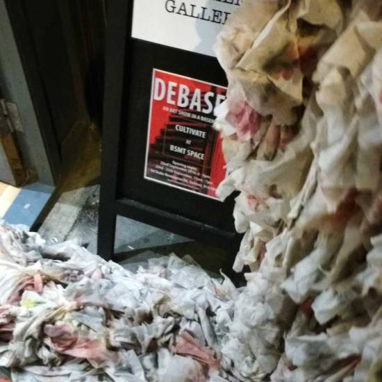 Well that was a beautifully intense four or five days. Emma Harvey and I have been doing this Cultivate gallery thing for over five years now, we put on over 150 shows, evens and such, we’ve shown the art of well over a thousand artists, it has been almost defiant, it has been exciting, the art of sharing, making things happen, taking over spaces and bring them to live. Last weekend we put on a Cultivate group show called Debased over at BSMT Space in Dalston, London N16. There’s a great big article over on the Organ pages, a review packed with thought, word, image and to some extent frustration. I thought it was a very special show, intense, emotional, rewarding, very hard work…. Anyway, please do read about it and explore it all over on the Organ pages. There’s some images of the work I showed further down the page here, the art of the other artists we invited and the performances of Amy Kingsmill and Marnie Scarlet are over on the Organ pages along with the trumpet blowing and… and well thank you everyone, thanks to all who came, all who took part and all who followed the events on line and such. .