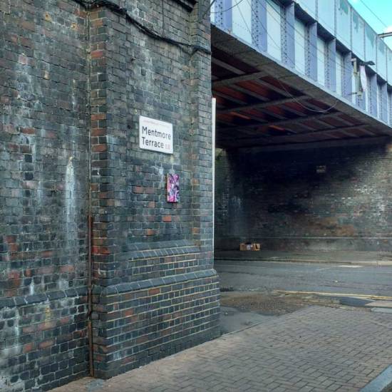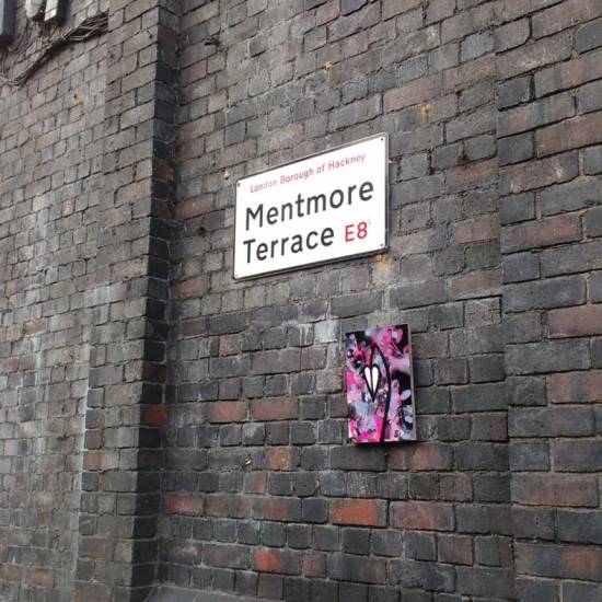 Today’s “Thirteen Shelves” piece, one of thirteen painted on unwanted pieces of wooden shelving, was left hanging on an East London Wall, by the railway, there to be taken should someone wish to… Thirteen Shelves – October 2016. Thirteen white wooden shelves from a smashed up piece of furniture, 25cm x 35cm, found, recycled, turned into blank canvases and saved from a Hackney skip…