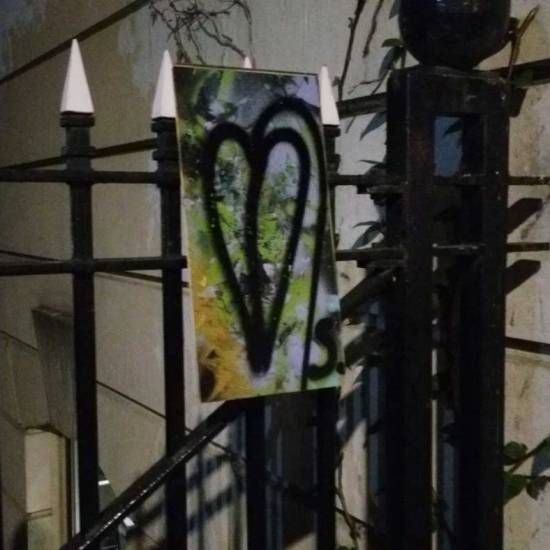 The latest of the 43 paintings that make up the December #43ArtDrop piece, have been left hanging on walls for people to take should they wish to. Another piece of work in 43 parts, 43 paintings on things found on the street, things found, painted on and then put back on the street, mostly the London streets (and river banks) occasionally out of town. New life and fresh layers on unwanted thrown out things, fresh growth. Pieces left by London Bridge, by the river, a piece left on a rather colourful East London building, another by a railway bridge in Hackney, and one left outside a railway station in Birmingham, all of them left for people to take, all with the hash tag on the back so people can engage, this people of work is partly about the engagement and the social media interaction, where do they go? Back in to landfill? Hung on people’s walls? All 43 parts of the piece will be hung out before the year ends, the final #43 piece of a long long year….
