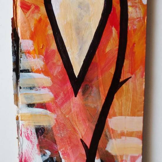 87/365 – The 87th painting of 2017, March 28th – “Fresh Leaf Growth” – Fresh leaf growth and the notion of a smaller painting brought to a finished state every day of the year during 2017. Fresh leaf growth and new layers growing on on an evolving piece of heavy duty cardboard now concluded (36cm x 21cm) – Acrylic, brush work, marker pen, varnish.
