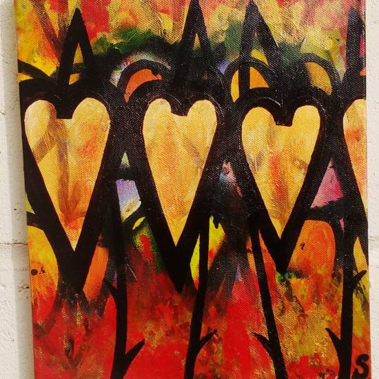 82/365 – The 82nd painting of 2017, March 23rd – “Fresh Leaf Growth” – Fresh leaf growth and the notion of a smaller painting brought to a finished state every day of the year during 2017. Fresh leaf growth and new layers growing on on an evolving canvas now concluded (25cm x 30cm) – Acrylic, spray paint, brush work, marker pen, varnish.
