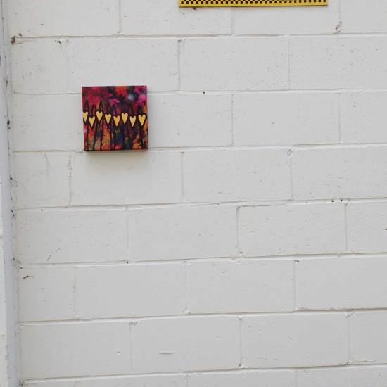 Fresh growth, new layers, leaves and the ongoing notion of a smaller painting brought to a completed conclusion on every single day of 2017. The notion goes on, yesterday was day 133, today’s, painting 134 is over there waiting to be photographed in the cold (day) light of tomorrow morning. Some of these pieces are to be found via the Cultivate on-line shop, some them found hanging on the street, some of them are waiting until the next exhibition or maybe the forthcoming Art Car Boor Fair or maybe just left out there in the undergrowth…..