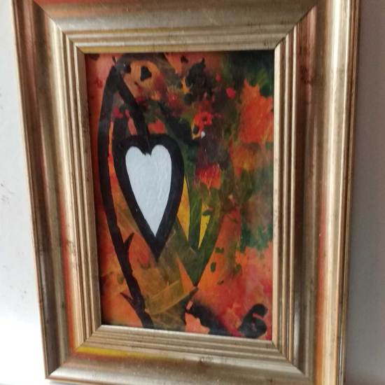 120/365 – Fresh Leaf Growth, April 30th Fresh growth, new layers, leaves and the ongoing notion of a smaller painting brought to a completed conclusion on every single day of 2017. On day 120, a 120th piece, acrylic, spray paint, brushwork, marker pen, varnish on some heavey water colour paper , 19cm x 13cm plus frame