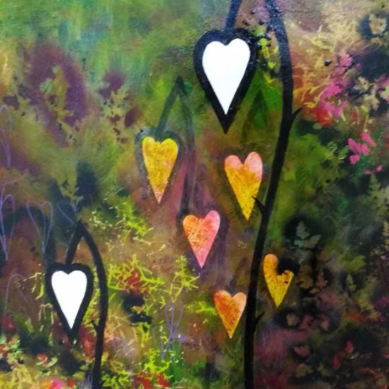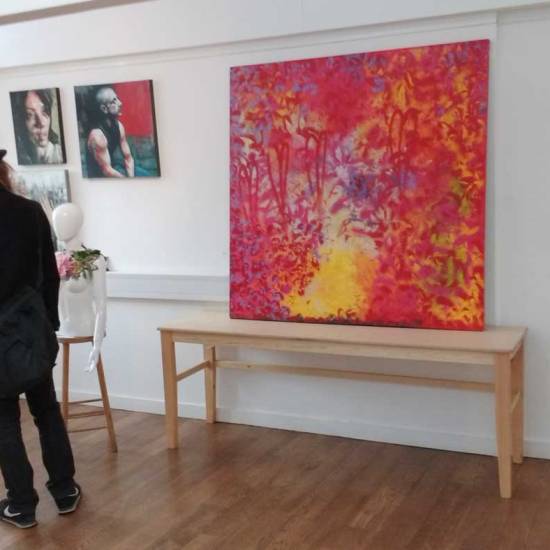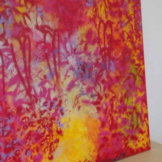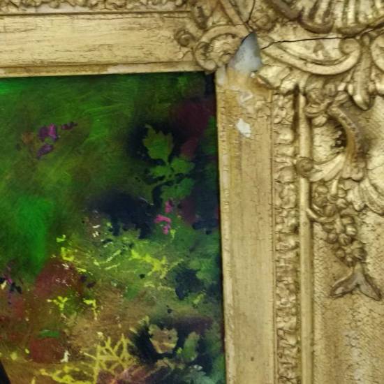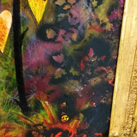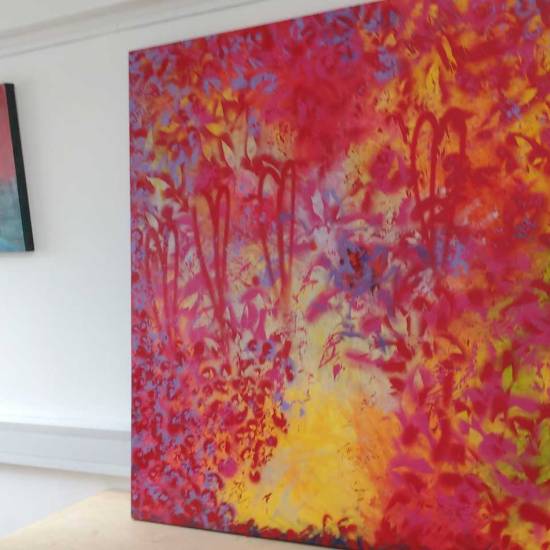 This page is about my art, about what I’m doing as an artist rather than a curator or writer or any of those things done under the Cultivate or Organ banners, and so here, on this page, are my three parts as an artist taking part in the Interact show – an installation consisting of some of the ongoing daily paintings, the big Where The Buddleia Grows canvas piece and the piece painted to grow inside the recently found gold frame….