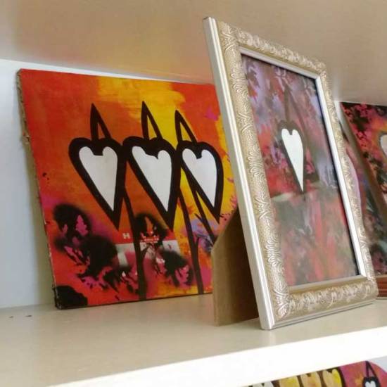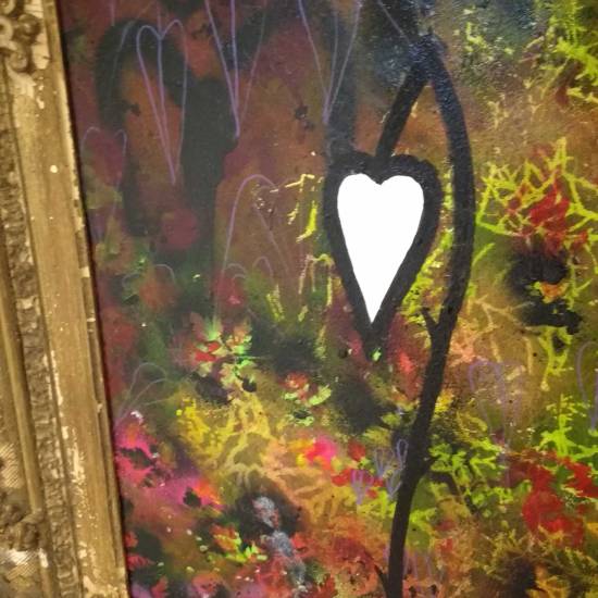 SEAN WORRALL And if a Frame is Thrown Out Then Leaves Will Grow. Acrylic on MDF in found frame (£200)SEAN WORRALL Where The Buddleia Grows, Acrylic, spray paint, stitching (£200)SEAN WORRALL The notion of a painting concluded everyday Various prices upon request (£5 to £40_