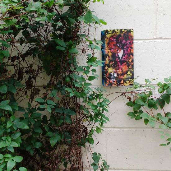 158/365 – Fresh Leaf Growth, June 7th Fresh growth, new layers, leaves and the ongoing notion of a smaller painting brought to a completed conclusion on every single day of 2017. On day 158, a 158th piece, acrylic, brushwork, spray paint, varnish on a piece of found wood