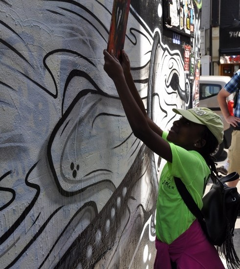 And here’s some of Dave Stuart’s photos, he of Shoreditch Street Art Tours, the photos are from the tour and the piece Dave wrote. The Photos of people and the use of the hashtag on the back is an important part of these Art Drop pieces, always excellent to see them posted on line