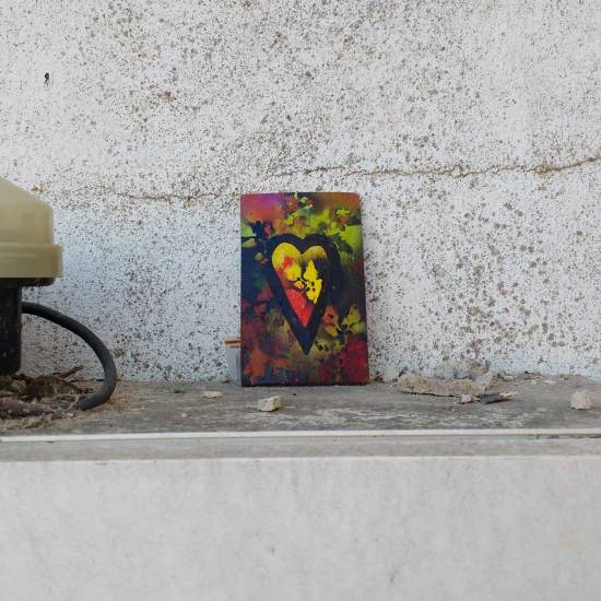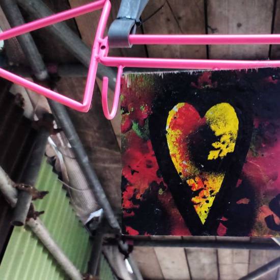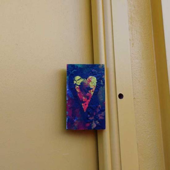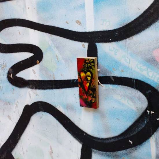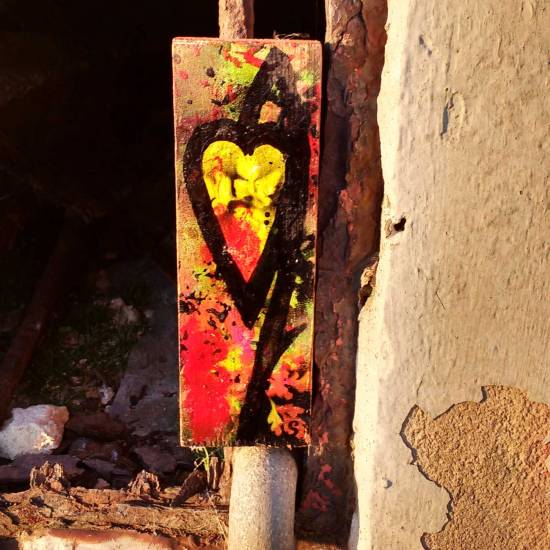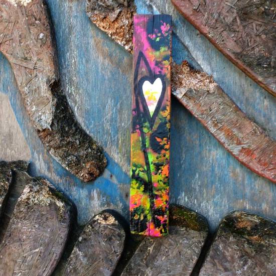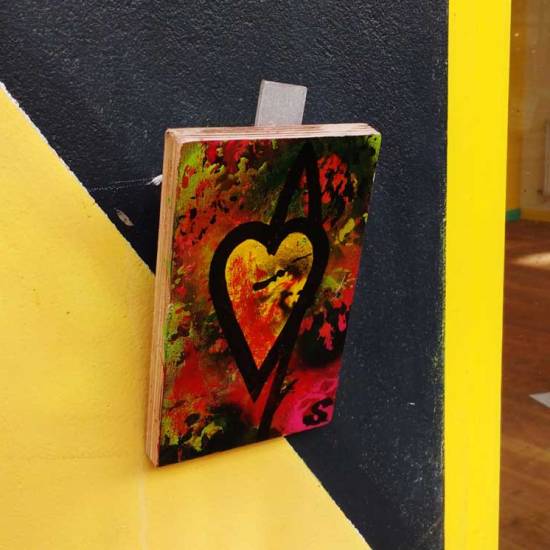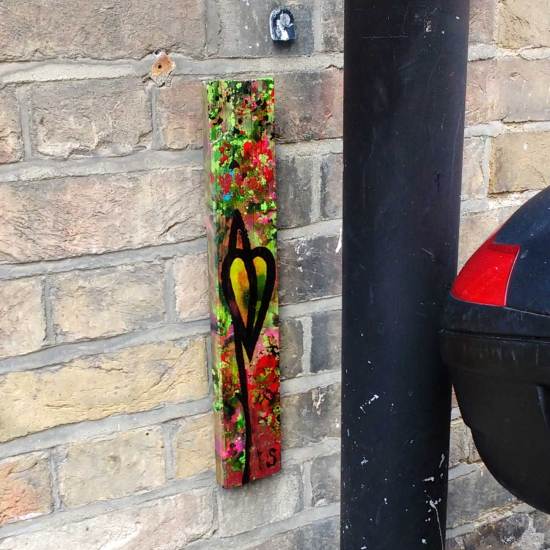 A #43ArtDrop piece, a piece of work in 43 parts, 43 smaller paintings, this time all painted on small pieces of wood picked up off the street (and if people throw away wood then leaves and layers with grow on that unwanted discarded wood). 43 paintings left hanging in and around the streets of Folkestone, the old town, the Triennial, the Fringe and Bob and Roberta Smith’s “Folkestone is an Art School” pieces. 43 paintings left to to be taken should people with to do so. A #43ArtDrop in Folkestone, September 2017. 43 pieces with hashtags on the back, the #43ArtDrop and the social media interaction is an important part of these pieces…