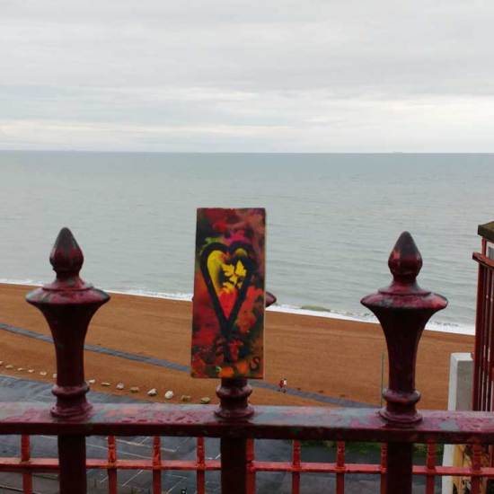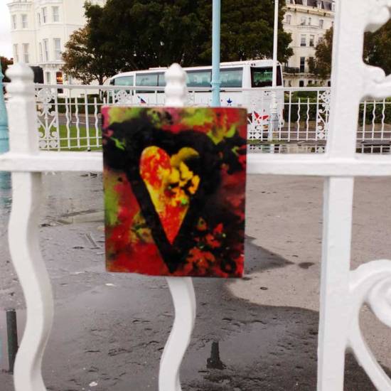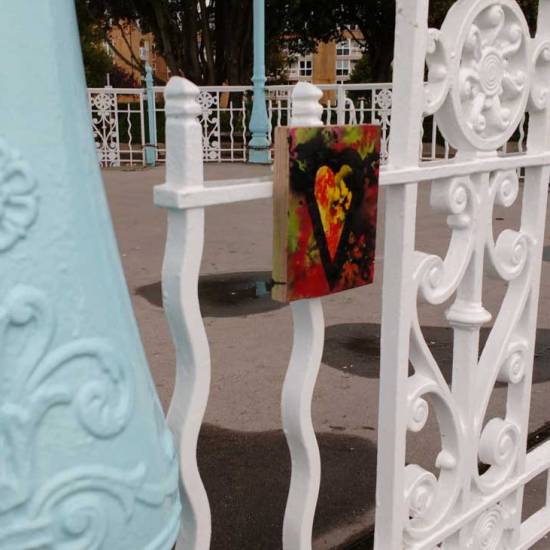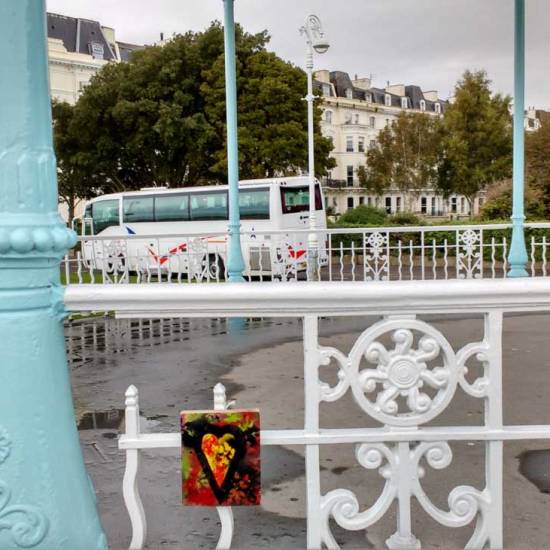 Friday’s unfinished business in Folkestone and the final 10 parts of the #43ArtDrop piece. A piece of work in 43 parts, 43 paintings on found recycled pieces of unwanted wood (and when wood is thrown out leaves will grow), 43 pieces carefully hung, never actually dropped, 43 paintings left in and around Folkestone for people to take should they wish to….