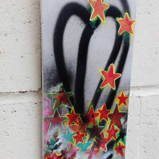 Daily Painting 353/365 (19th December,2017) – Fresh growth, new layers, leaves and the ongoing notion of a smaller painting brought to a completed conclusion on every single day of 2017. Acrylic, brushwork, spray paint, gloss varnish on a found piece of plasterboard 40cm x 19cm