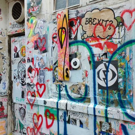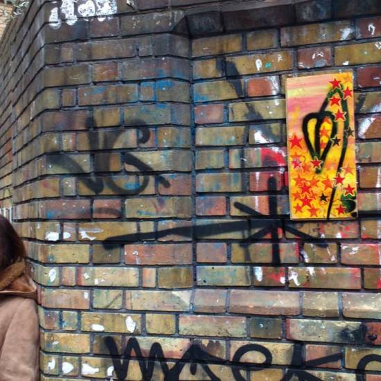 #365ArtDrop18 7/365 – A leaf left, the 7th of 365 artdrop pieces of 2018, painted on a recycled piece of hardwood and now left on a street corner on Brick Lane, East London on a busy Sunday afternoon…