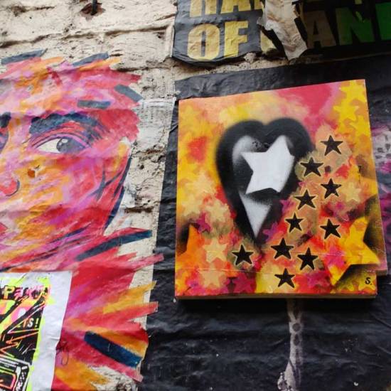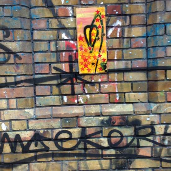 The art of dropping, the ongoing notion of (another) year-long piece of art in 365 parts, 365 paintings on things found on the street, things recycled, reclaimed, saved from landfill, used as a canvas, painted on, and then left back out there, hung back out there on the street for people to take should they wish to. And as we’ve said before, people taking part, posting photos of themselves with their found pieces is a big part of this piece of work that, all being well, will go on throughout the year. Today several pieces were carefully places (never dropped) around East London – 365 will go out this year, that doesn’t mean one a day, today six were left out there, tomorrow there might be more, they’ve been building up here in the studio waiting for decent weather…