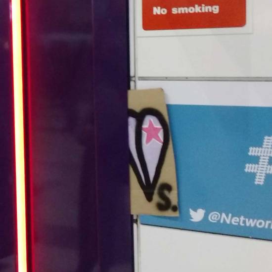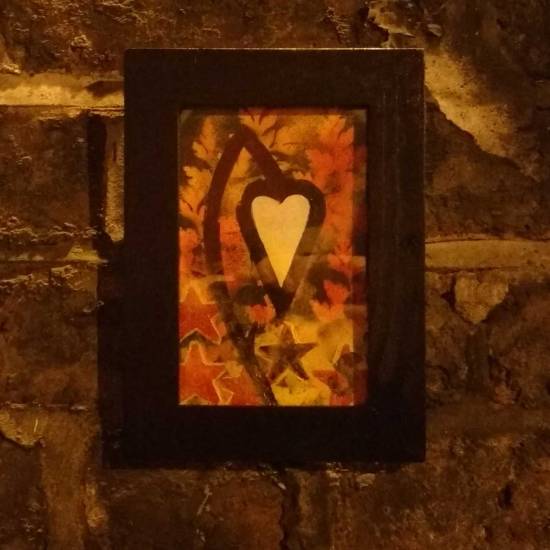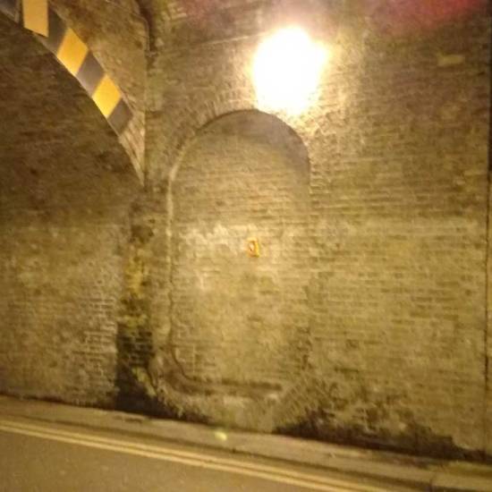 Another #365ArtDrop18 piece – 16/365 – A leaf painted, the 16th of 365 artdrop pieces that, all being well, will happen in 2018, a 16th piece painted on and in a recycled found frame, a small red frame that had a photo in it and the glass still intact when I found it and pulled out of a skip and hopefully rescued from landfill. The frame is now black, the glass cleaned up, a leaf has grown inside it and…. And last night it was left hanging on a wall under another bridge in East London, left there on the way home from a rather impressive Lennie Lee exhibition, left hanging next to a Thierry Noir piece for someone to take should they wish to. The hashtag is on the back, will it be taken? Will the hashtag be used? Will it find a home or will it end up in landfill anyway? The hashtag is important, we would like to know where these pieces go, I believe part five is now somewhere in Belgium?
