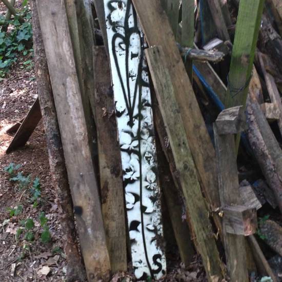 The thinking was that they would appear in several different situations, all eleven as one piece, Eleven, it is very much one piece of work. Eleven made a debut two weeks ago at Wild, at outdoor installation/sculpture show in the woods at the back of the Quaker Meeting House out in Leytonstone, as part of the 2018 Leytonstone Arts Trail (always a pleasure to be invited to take part in the Arts Trail, this was my fourth year out there in E11). There’s some documentation of Wild and the twenty or so artists who took part this year over on the Organ website. Eleven was left under some trees deep in the woods, left for the foxes to run over,and the Blackbirds to checkout, it sounded brilliant in there for the two weekends that the show was open for.