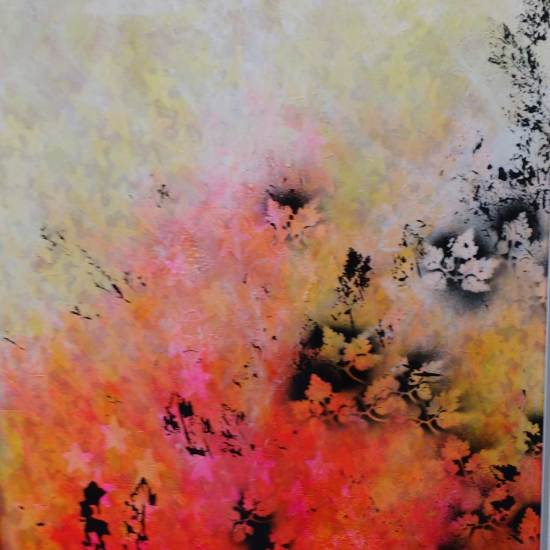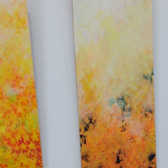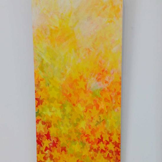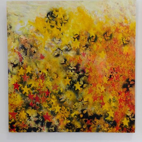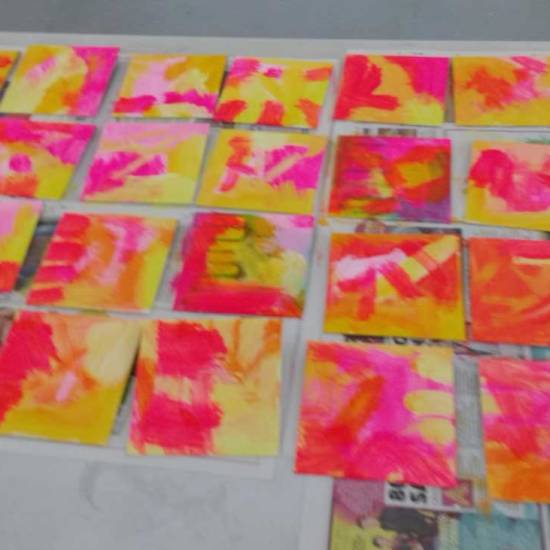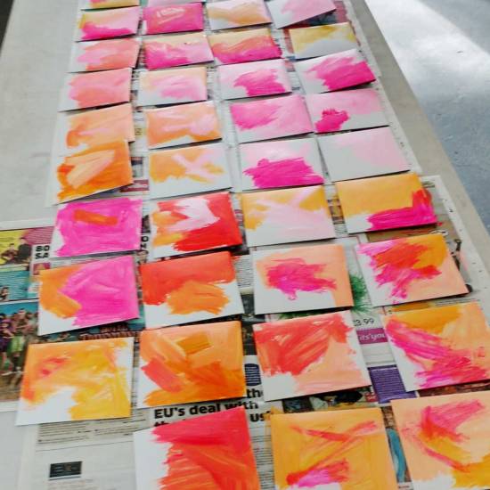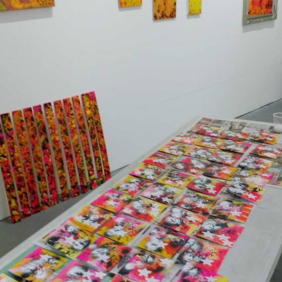 Sean Worrall work in progress on a new 43 Paintings piece at Unframed? No Format gallery, Deptford, South London, July 2018