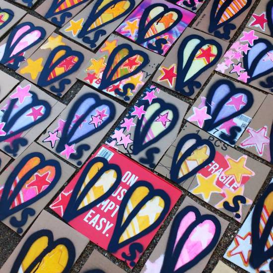THE 2018 HUNDRED PIECED PIECE – The 2018 Art Car Boot fair is almost upon us and tradition now almost demands the annual Hundred Pieced Piece, a now annual piece of work in one hundred parts, a hundred paintings on recycled cardboard all painted together, all painted at the same time, each piece on sale at just £1 per painting on the day of the fair. The day this year being Sunday September 16th and the place being Granary Square, Kings Cross. The piece is about many things, about leaves growing on the things we waste, fresh layers of growth on the things we mindlessly throw out, about recycling, about the notions of art for all, that art can be fun, original paintings can be for everyone, the notions of the cheap art manifesto, the idea that anyone can get involved in collecting and enjoying art, that art is not just for the privileged few, that art isn’t a business (a curator, a curator who is also an artist, a rather boring artist, said to me recently that he thought art was just another business, that it was nothing more than that, how depressing, what a soulless thing for an artist to say). I like the idea that these pieces are affordable to (almost) everyone, that these pieces might be the first piece of original art that a youngster might buy, that it might spark an idea, a smile, that the painting might make someone smile when they look at it, art needs to have a soul, it doesn’t always have to come with a massive price tag. I enjoy painting these pieces for the Art Car Boot Fair, I love be part of the Art Car Boot Fair,I think this is the fifth time I’ve painted a Hundred piece for the fair now. Here then are the hundred leaves (or whatever you wish to see) for the 2018 Art Car Boot Fair, see you in Kings Cross, bring your coins, the Art Car Boot Fair is always one of the best days of the year, art is everyone.