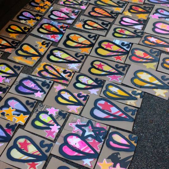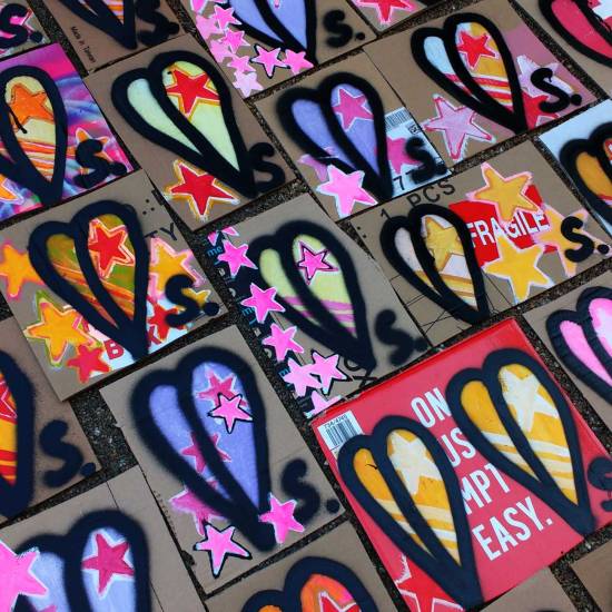 SEAN WORRALL – The 2018 Hundred Pieced Piece, a piece of work in one hundred parts, one hundred paintings painted together for the 2018 London Art Car Boot Fair, each painting for sale at £1 per piece on the day of fair.